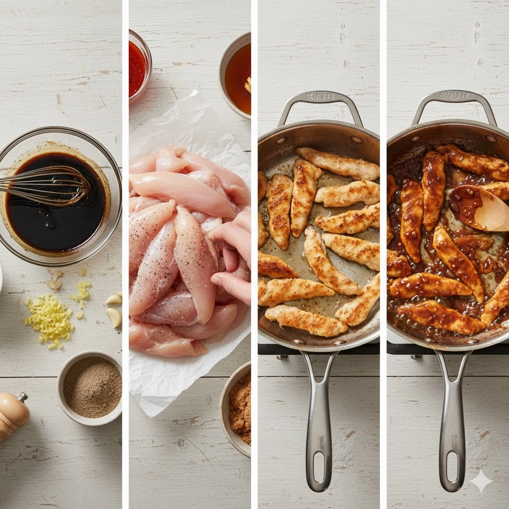 The foundation of this dish is the emulsion of fermented soy and natural sweeteners. When whisking the glaze, ensure the ginger and garlic are finely minced so they distribute evenly rather than clumping. When prepping the chicken, aim for uniform half inch strips. This consistency ensures that every piece reaches the safe internal temperature at the exact same time, preventing smaller pieces from becoming tough while larger ones remain undercooked.