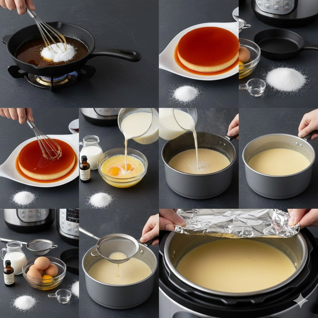 - Coat the Mold: Immediately pour the hot caramel into your pressure cooker-safe pan, tilting the pan to coat the bottom surface completely before it hardens.