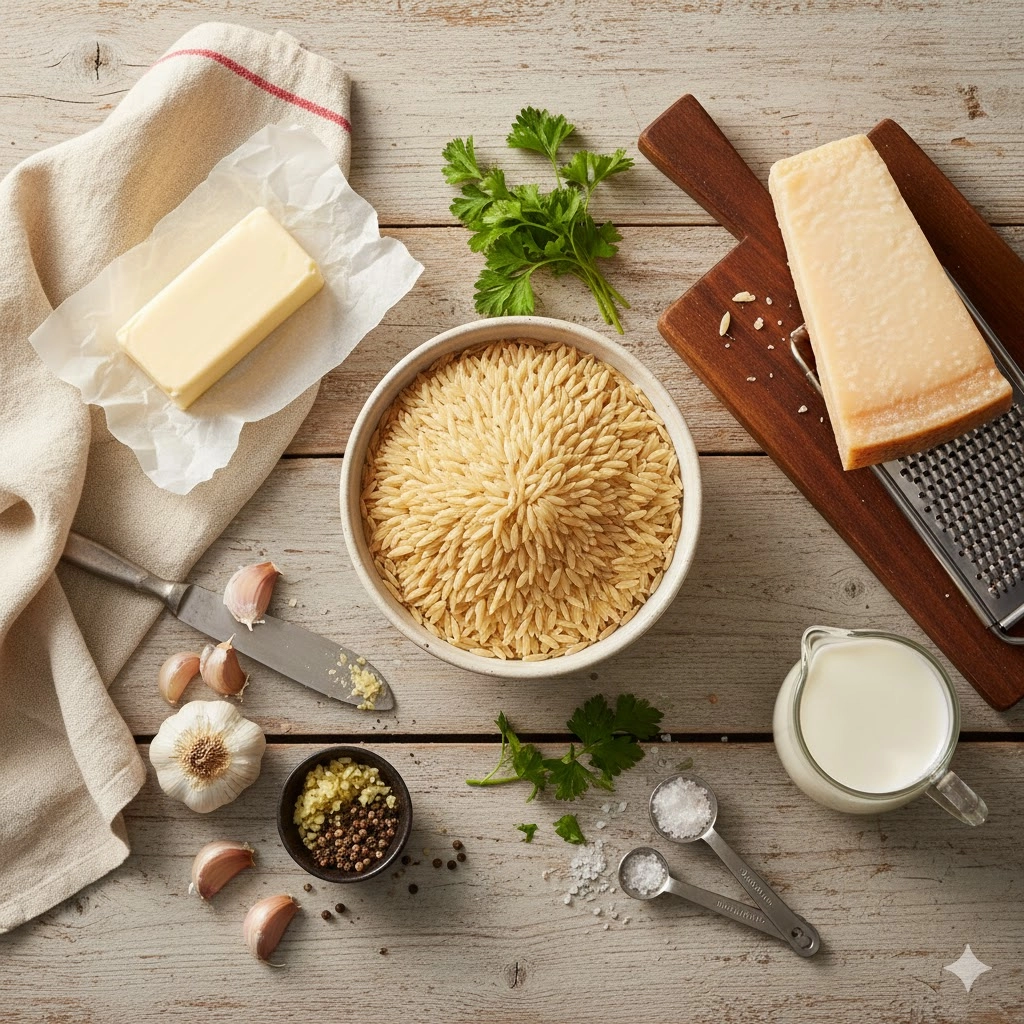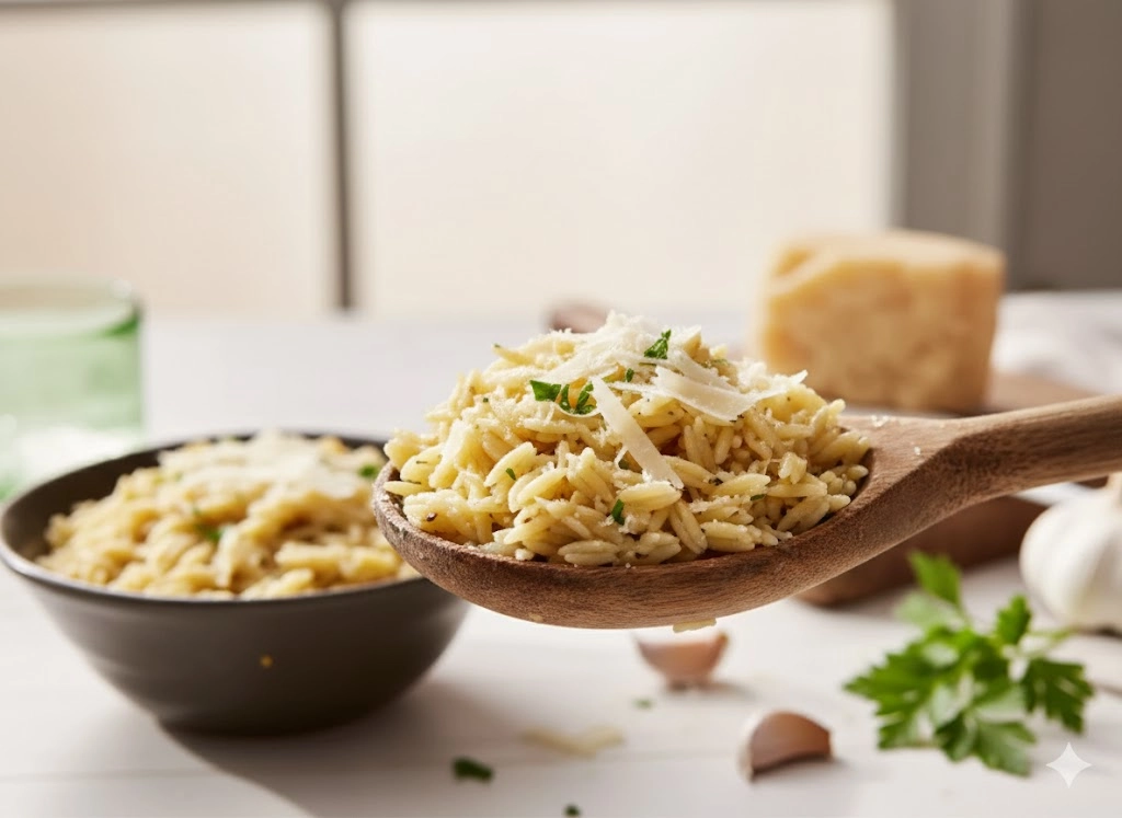 This magnificent Parmesan Garlic Orzo transforms a simple box of rice-shaped pasta into a decadent, velvety masterpiece using pantry staples. Perfectly creamy and ready in under 30 minutes.