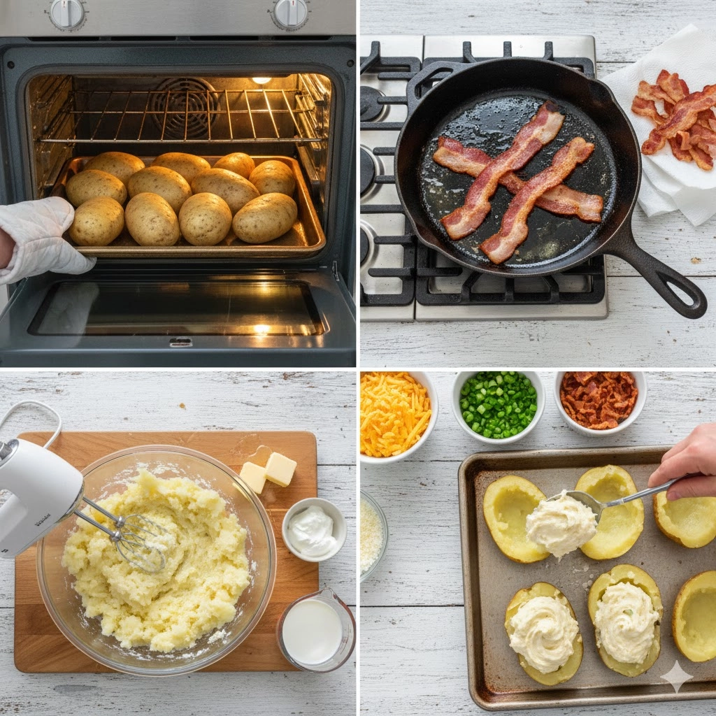 These potatoes represent the pinnacle of comfort food, offering a sophisticated blend of simple ingredients that satisfy the palate on every level. By following this precise sequence of double-baking, you transform the humble Russet into a vessel of creamy, cheesy, and smoky delight. Whether you are prepping them for a holiday feast or a cozy weeknight dinner, the result is always a crowd-pleaser that guests will remember long after the meal is over. Enjoy the process of crafting these savory treats, and savor every buttery, bacon-filled bite.