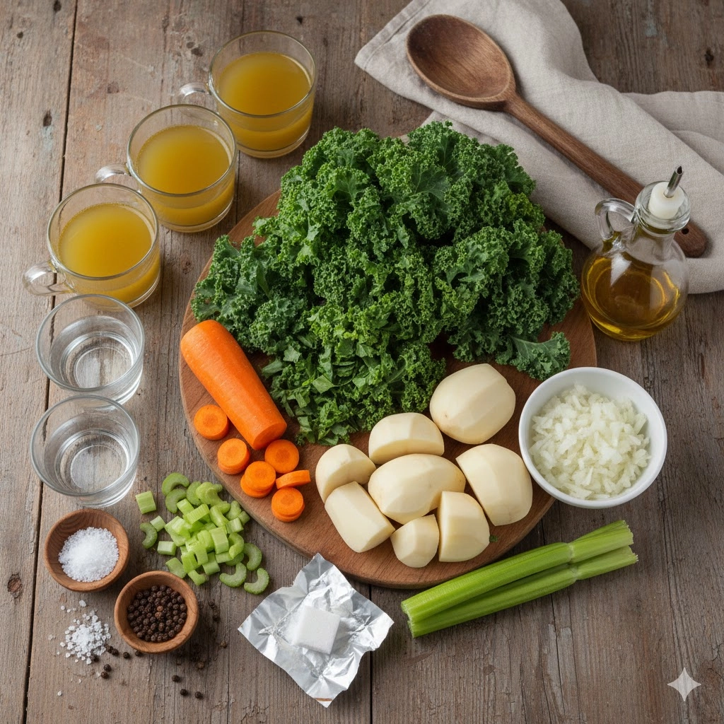 To create this soul-warming dish, you will need a handful of fresh produce and pantry staples. Each ingredient plays a specific role in building the flavor profile, from the aromatic base to the earthy greens.