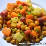 - Test for doneness by piercing the thickest carrot or potato piece with a fork; it should be tender and the chickpeas should look matte and slightly golden.