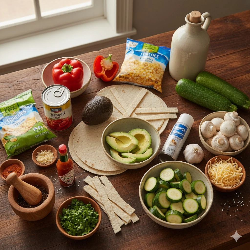 This Vegetarian Tortilla Soup with Avocado is a masterclass in texture and flavor layering. It features a medley of fresh zucchini, sweet corn, and earthy mushrooms in a perfectly spiced broth topped with crispy flour tortilla strips.