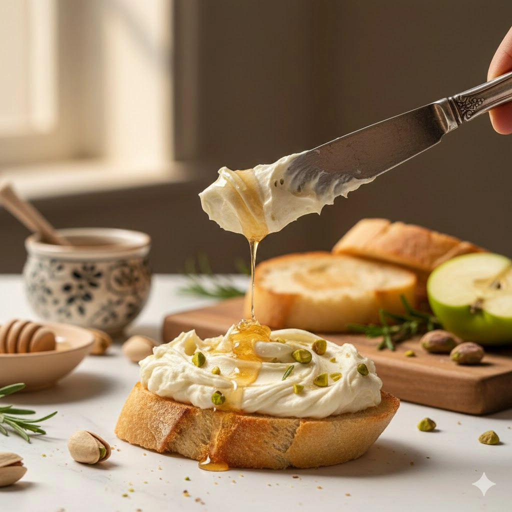 Swap the honey topping for a homemade, intensely flavored cranberry-orange marmalade. Instead of pistachios, use toasted, glazed pecans or walnuts. The slight tartness of the cranberry, paired with the citrus lift of the orange zest, cuts through the richness of the cheese beautifully and adds a festive color palette to the presentation. You can also incorporate one quarter teaspoon of ground nutmeg into the cheese base before whipping.