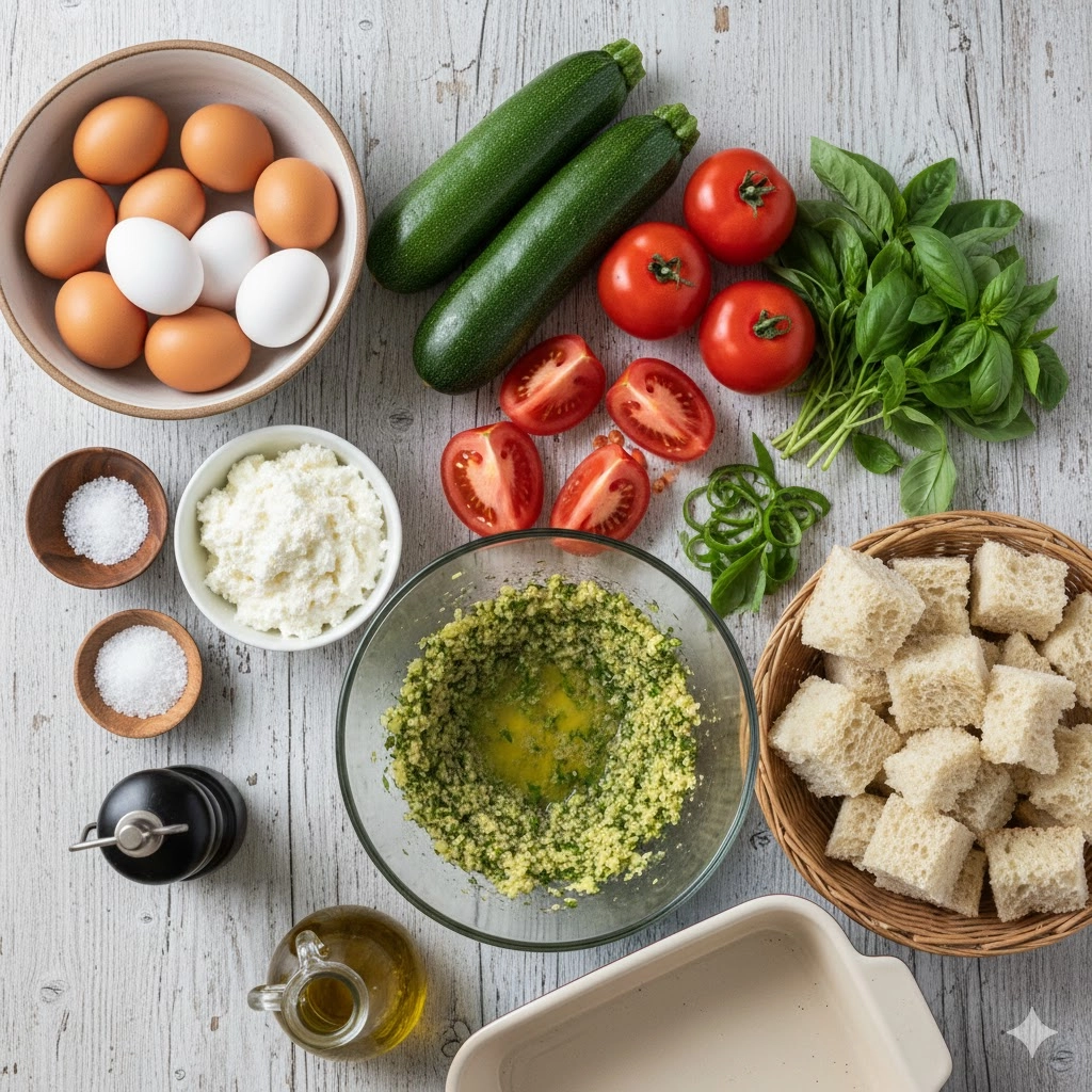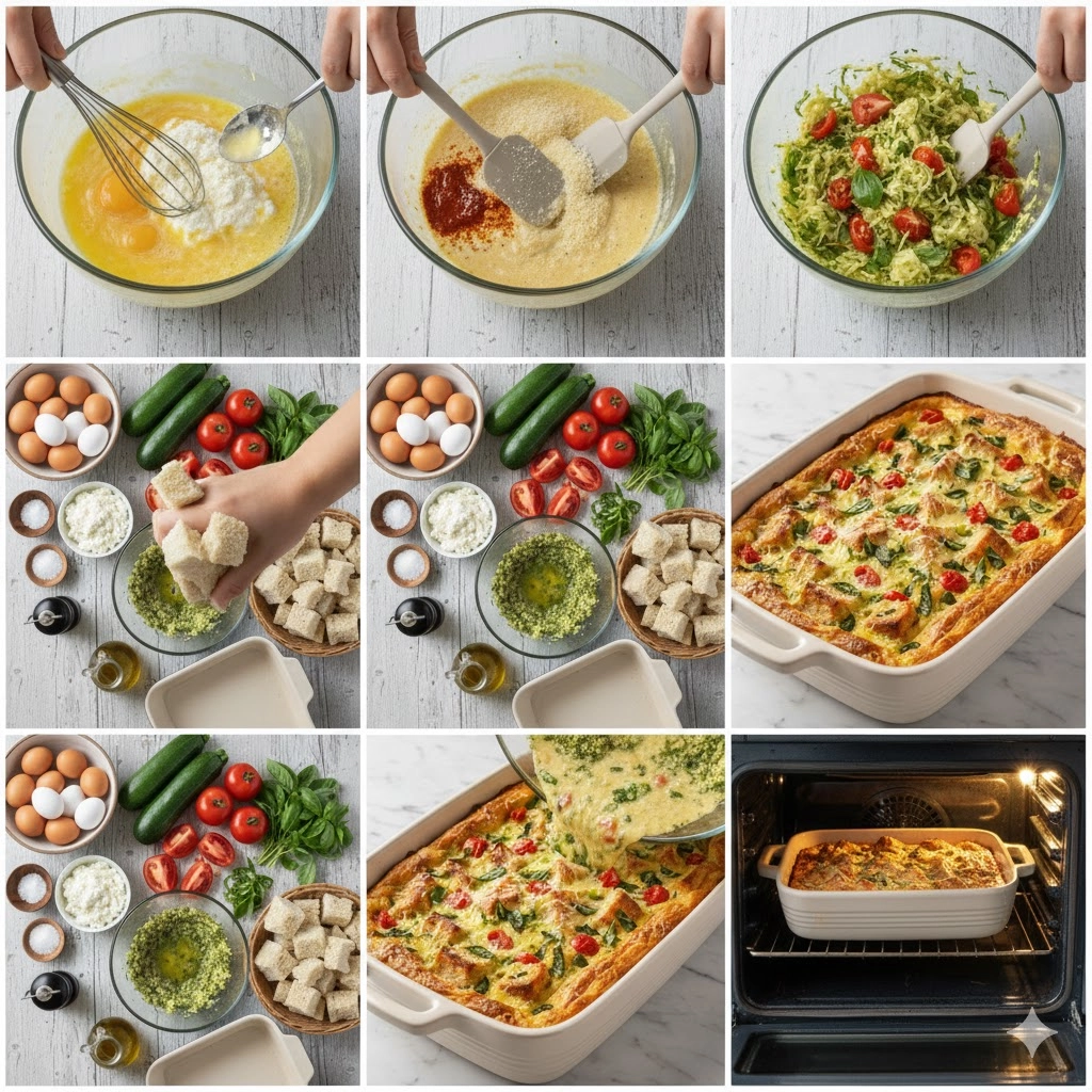 This savory Zucchini and Ricotta Breakfast Casserole features fresh garden vegetables, creamy ricotta, and rustic bread for a protein-rich brunch or meal prep option.